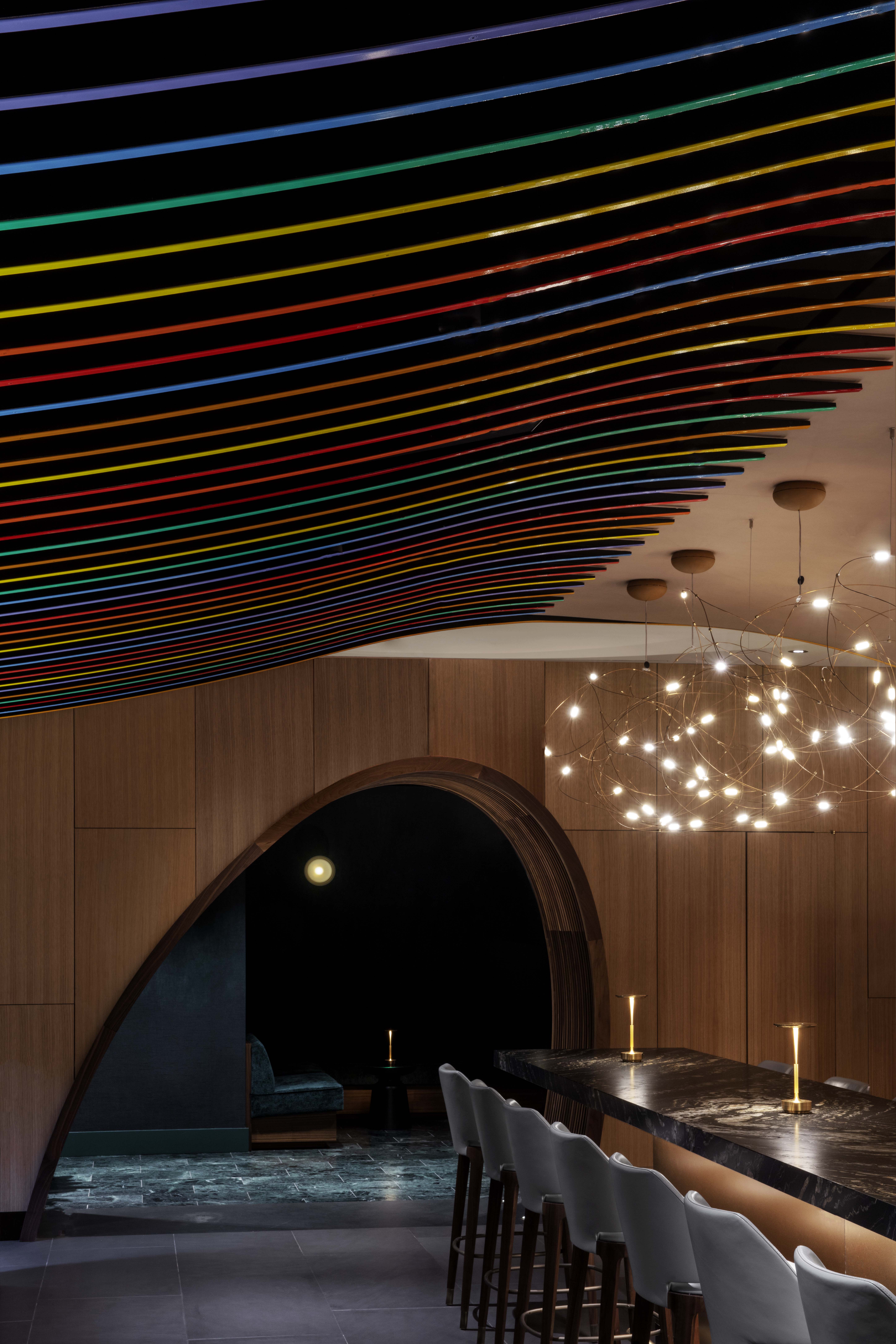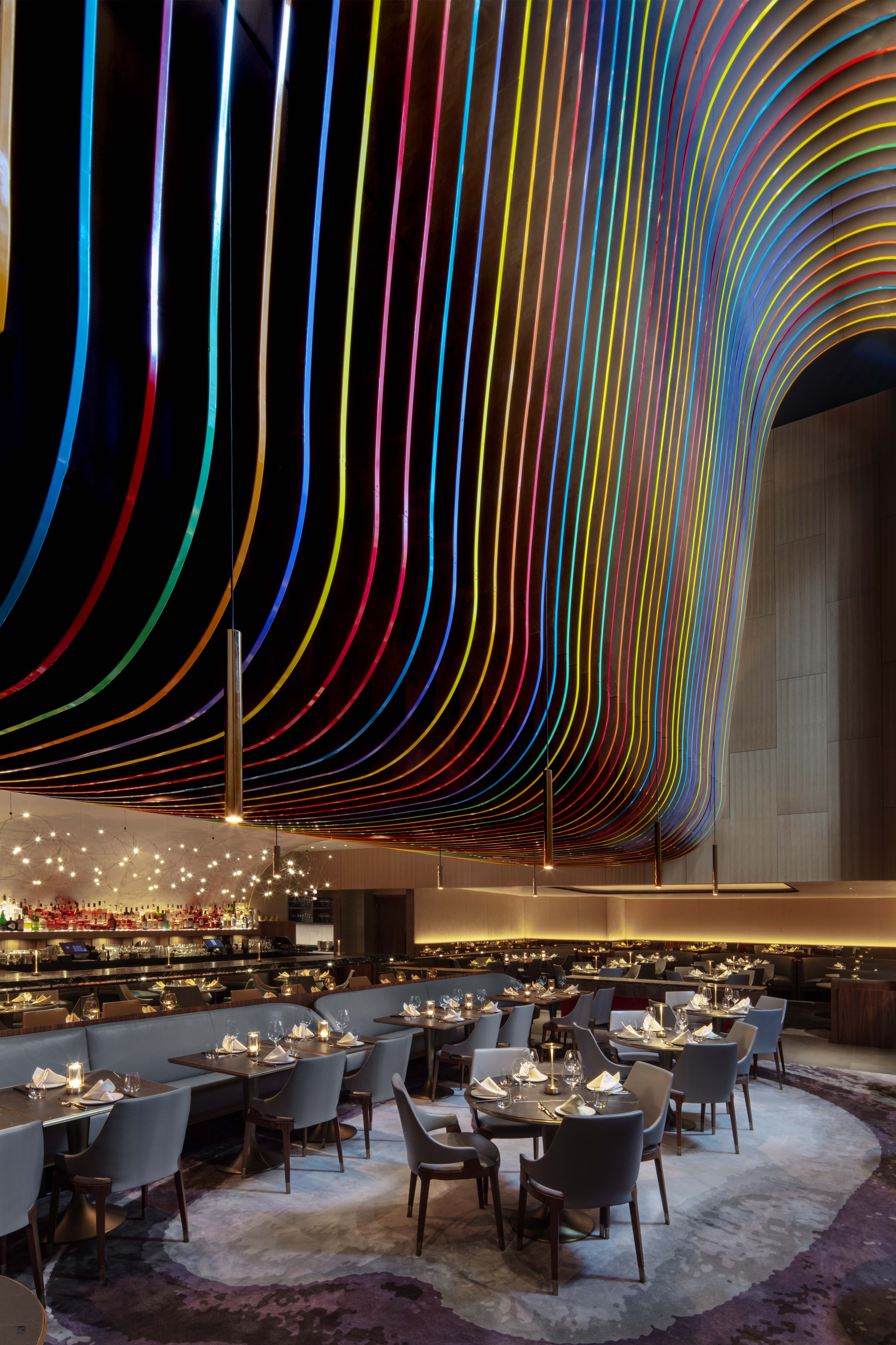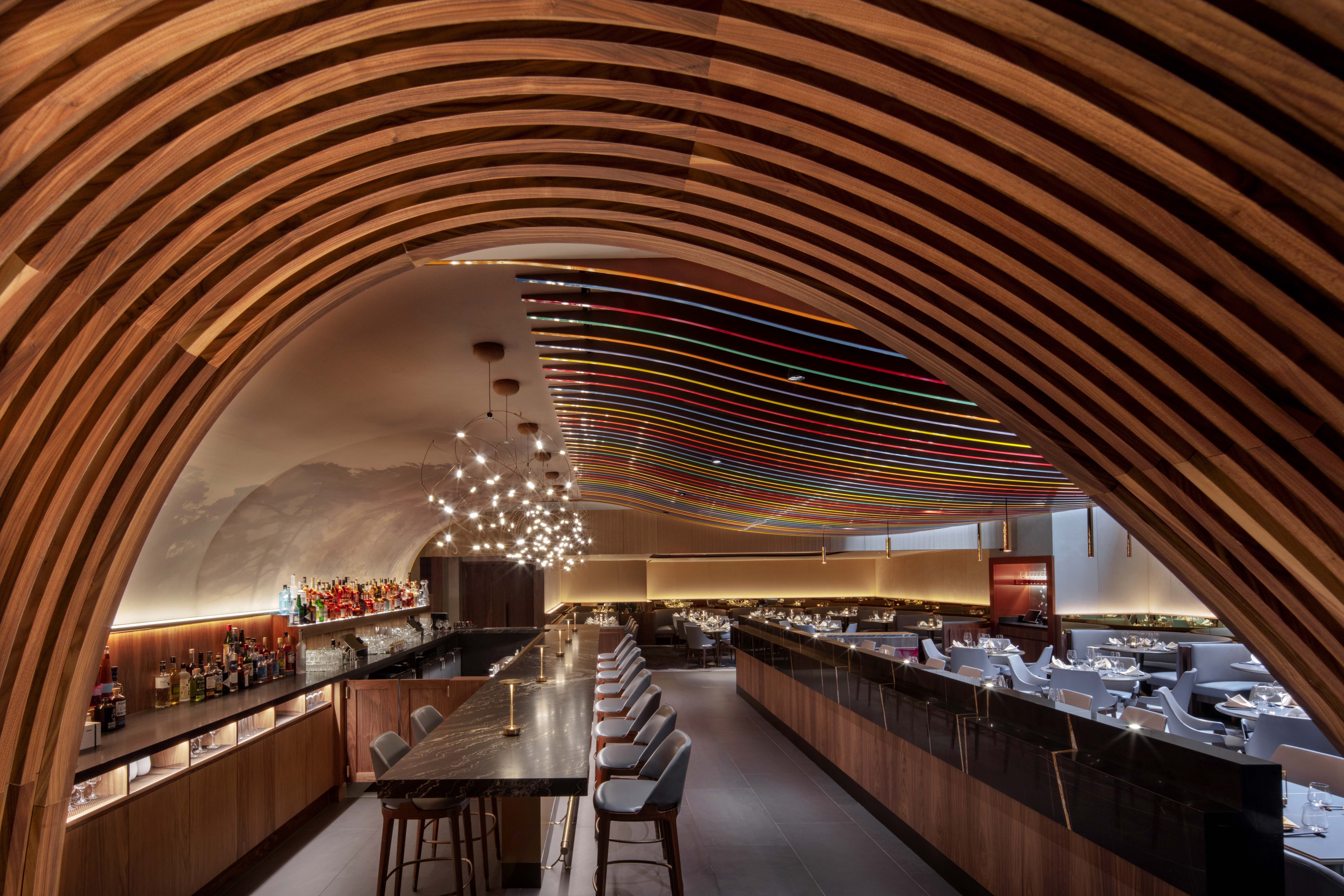 Modern art and fine dining meld at this culinary kaleidoscope underneath the David Geffen wing of the MoMA. The 11,000-square-foot restaurant spans three floors and features distinct dining areas: a street-level bistro, a cellar-level main dining room, and a subterranean speakeasy. Inspired by Chinese imperial palaces, Taoist principles, and contemporary art, 53 bustles by day and glows by night.