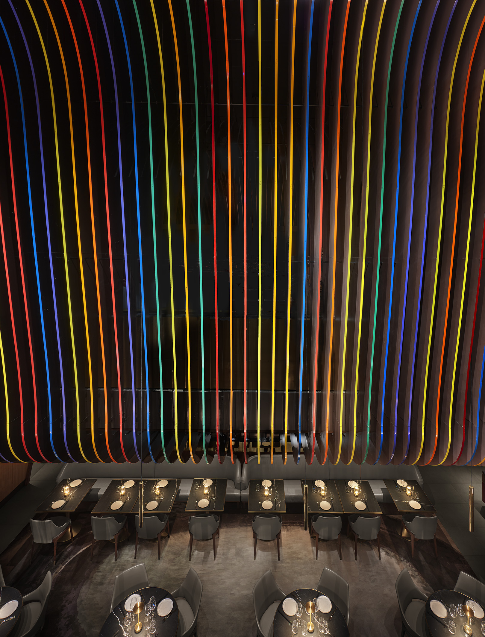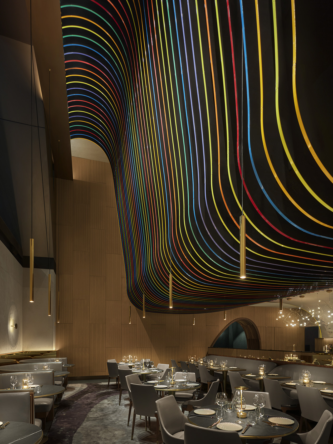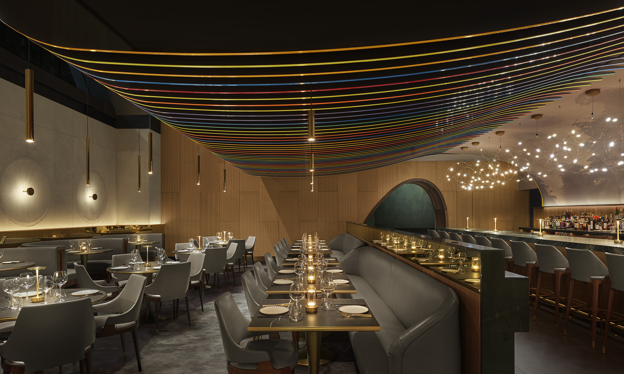 Modern art and fine dining meld at this culinary kaleidoscope underneath the David Geffen wing of the MoMA. The 11,000-square-foot restaurant spans three floors and features distinct dining areas: a street-level bistro, a cellar-level main dining room, and a subterranean speakeasy. Inspired by Chinese imperial palaces, Taoist principles, and contemporary art, 53 bustles by day and glows by night.
