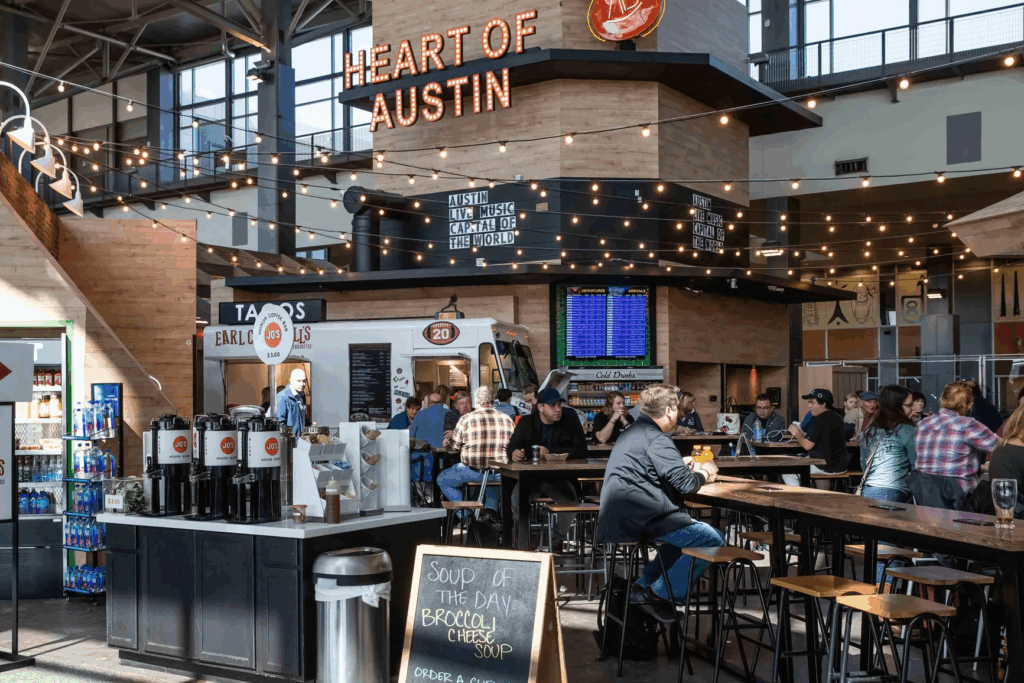 Commissioned to reinvent the Austin airport experience, Journey turned to the legendary music city itself for inspiration. We transformed The Heart of Austin, a live music venue that anchors the terminal, into a bustling center of activity. The area offers entertainment, food & beverage, and experiential retail to thousands of daily travelers who are happy to find interesting ways to pass the time.