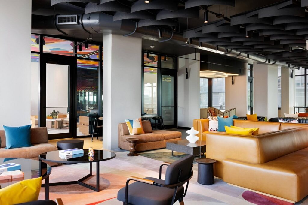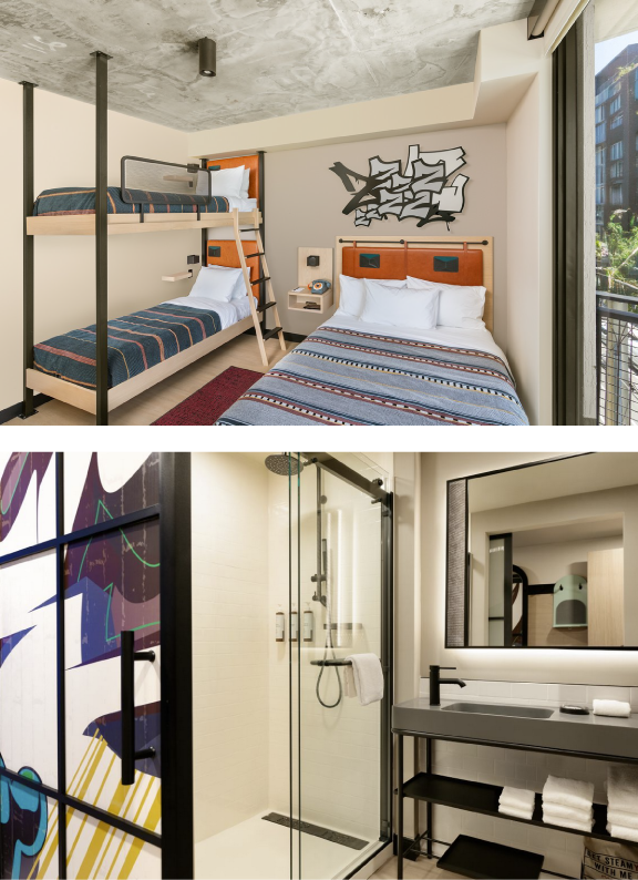 Journey designed all the interiors and lighting for the 77,000-square-foot building, which contains 120 guest rooms across 4 guest floors, an entire lobby level comprised of lounge and activity/amenity spaces, as well as two vibrant restaurants – one at ground level and one at roof level.