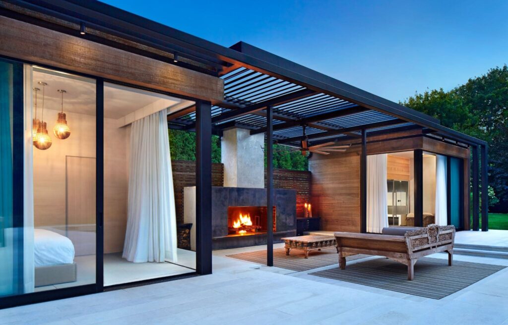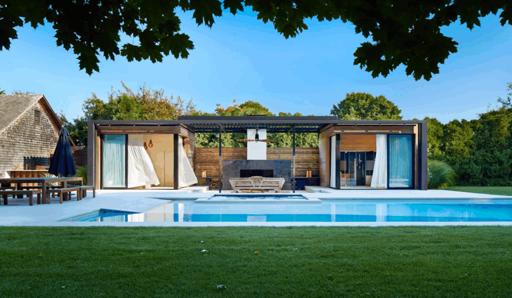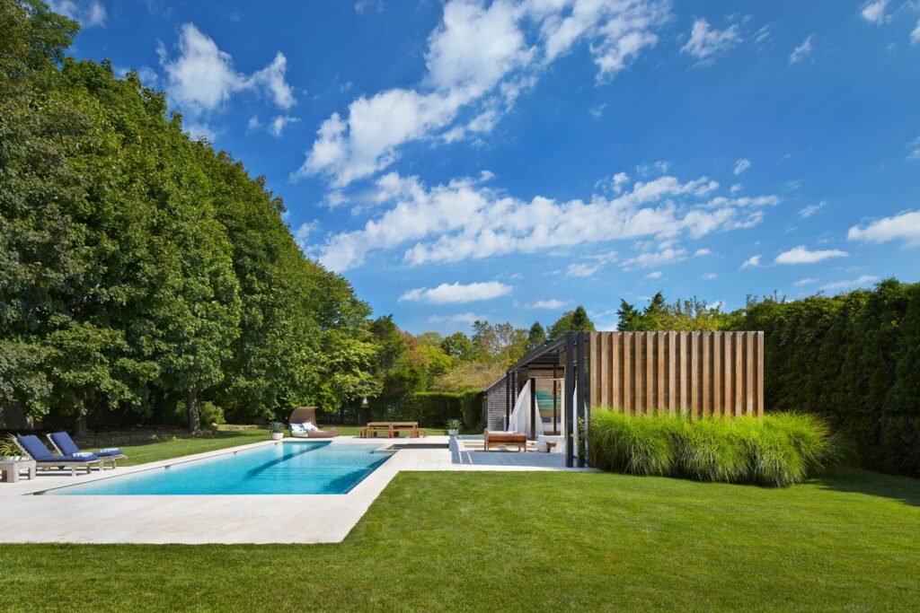 Journey was tapped by Amagansett homeowner Alex May to transform the outdoor area and pool house at his weekend residence into a lavish pool and spa retreat for day-night entertaining during the summer months. We designed a stunning wood and steel structure that created a modern indoor-outdoor oasis. The project was runner-up for the 2015 HC&G Innovation in Design Award in Architecture.