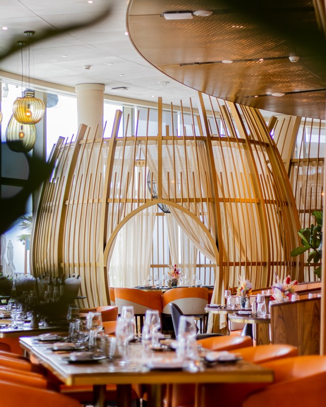 A sleek, high-energy setting perched in the Waldorf Astoria Lusail, Sushi Samba features floor-to-ceiling windows with panoramic sea views, bold geometric patterns, ambient lighting, and a striking tree-like centerpiece that anchors the space. Service is polished and attentive, enhancing the upscale yet lively atmosphere. SUSHISAMBA Doha is a feast for the senses—perfect for a memorable night out or a chic celebration.
