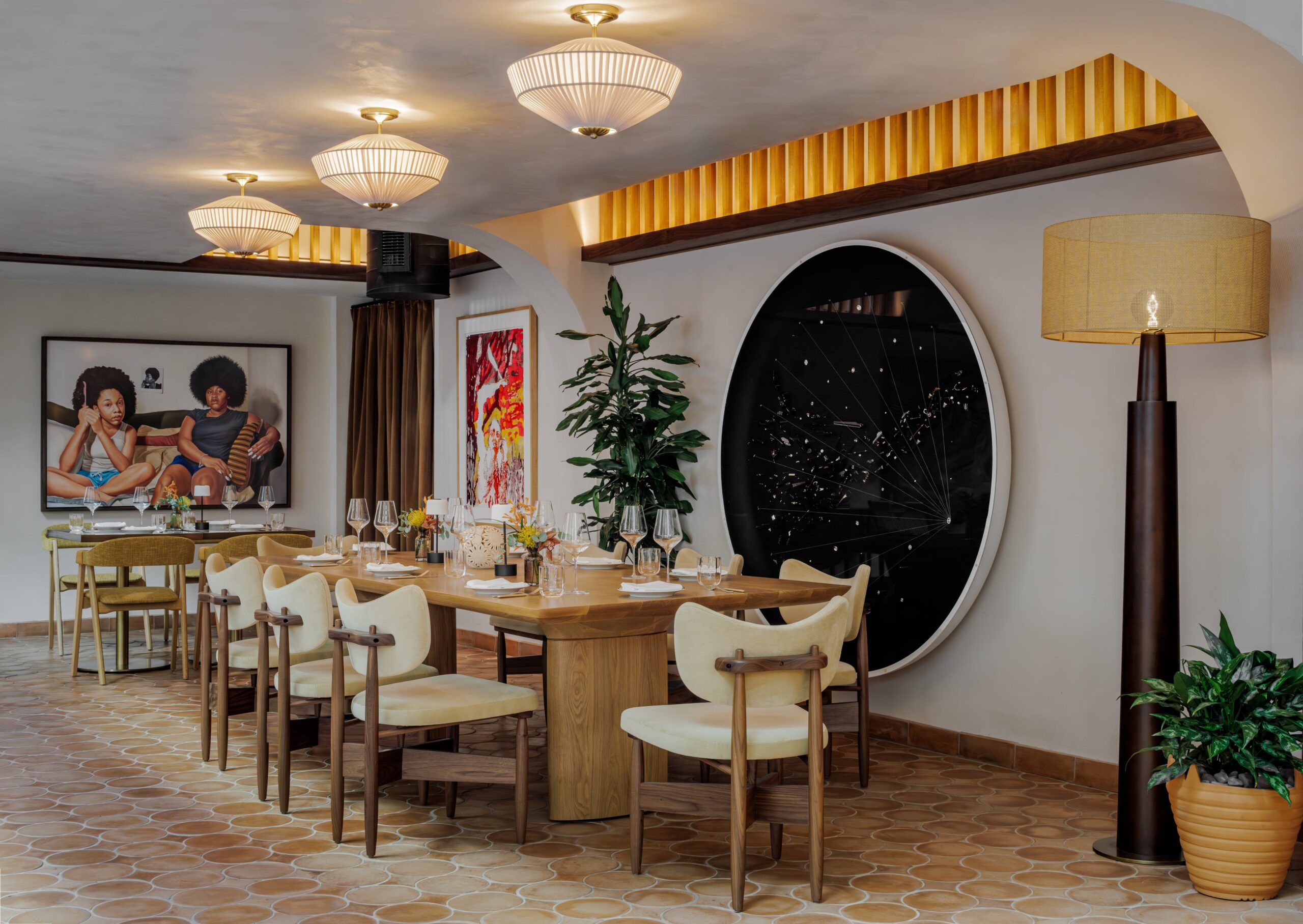 On the first floor of The Moore is Elastika, a Latin-inspired, all-day dining concept led by Michelin-starred executive chef Joe Anthony. The restaurant is named after the legendary Zaha Hadid “Elastika” sculpture hanging permanently above the space, spanning the building’s four-story interior arcade.