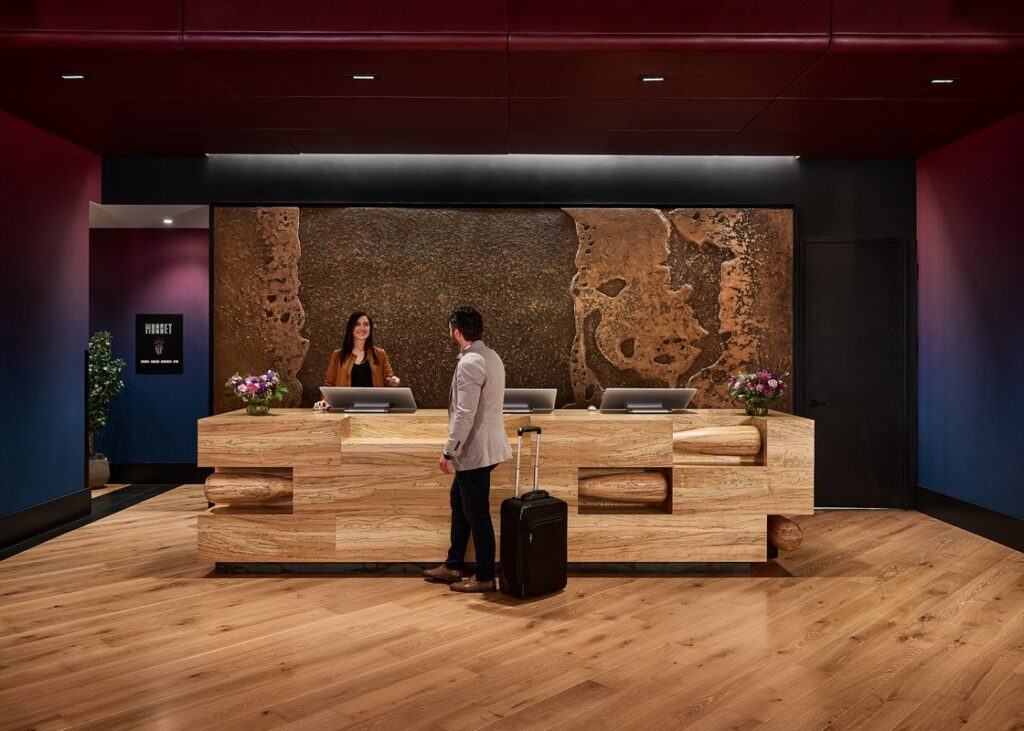 When imagining the interiors for the Rally Hotel, a 182-room property at the heart of the Colorado Rockies’ new McGregor Square complex, we decided to take a modern twist on the classic stay.