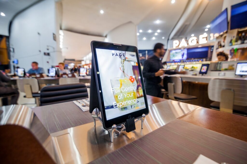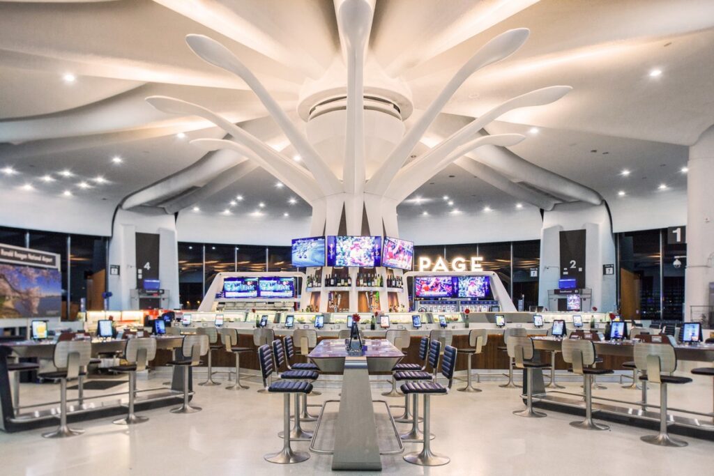 The feature venue is PAGE, a 142 seat restaurant with a flower like circular bar and an integrated light installation that highlights and enhances the iconic terminal structure.
