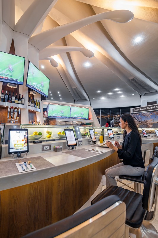 Terminal A at Reagan National Airport boasts a classic mid-century design. ICRAVE preserved its classic touches as part of a reimagined gatehold.